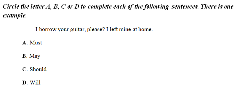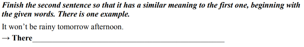 Để làm tốt phần này, học sinh cần nắm vững các chủ điểm ngữ pháp thuộc trình độ A2 đồng thời có thể sử dụng linh hoạt các cấu trúc câu khác nhau để diễn tả một ý nghĩa. Nên tham khảo thêm dạng bài Điền một vài từ để hoàn thành câu viết lại của Cambridge PET exams. |