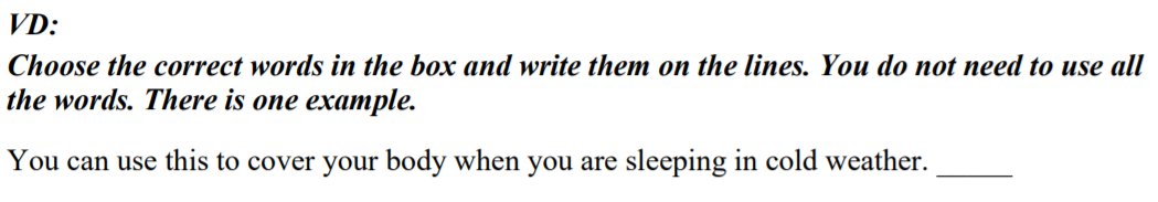 Phần này có nội dung giống với 10 câu hỏi đầu trong các đề Reading & Writing của Cambridge Flyers exams. |