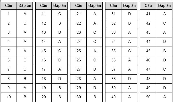 Đáp án tóm tắt của đề minh họa lần 2 thi tốt nghiệp THPT 2020 môn Anh như sau: