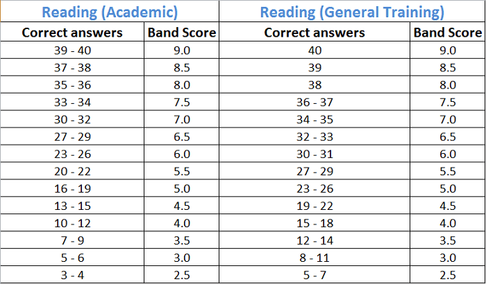 - Thang điểm IELTS Reading:
