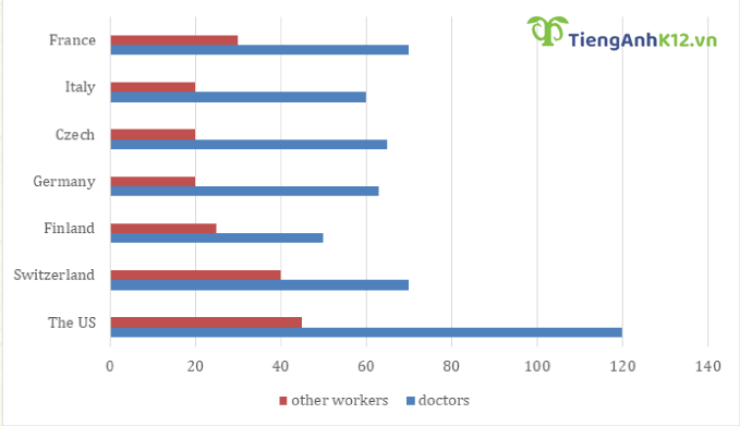 Đề bài: The chart below shows the annual pay (thousands of US dollars) for doctors and other workers in seven countries in 2004