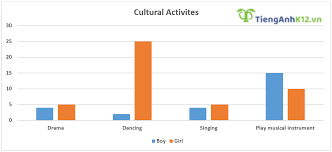 Đề bài: The charts show the percentage of boys and girls aged 5-14 taking part in cultural activities and sports in Australia in 2003.