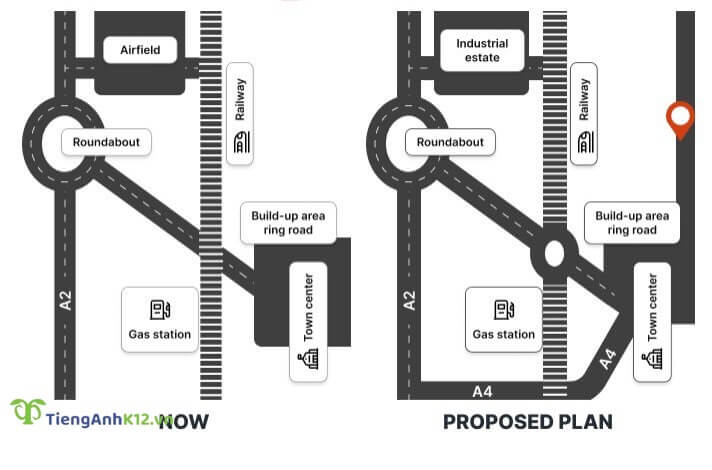 Đề bài: The maps below show Hunderstone town at present and a proposed plan for it