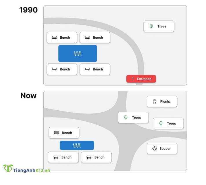 Đề bài: The pictures show the changes of a park from 1980 to the present day
