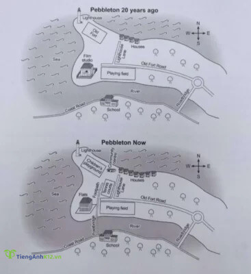 Đề bài: The plan below shows the village of Pebbleton 20 years ago and now