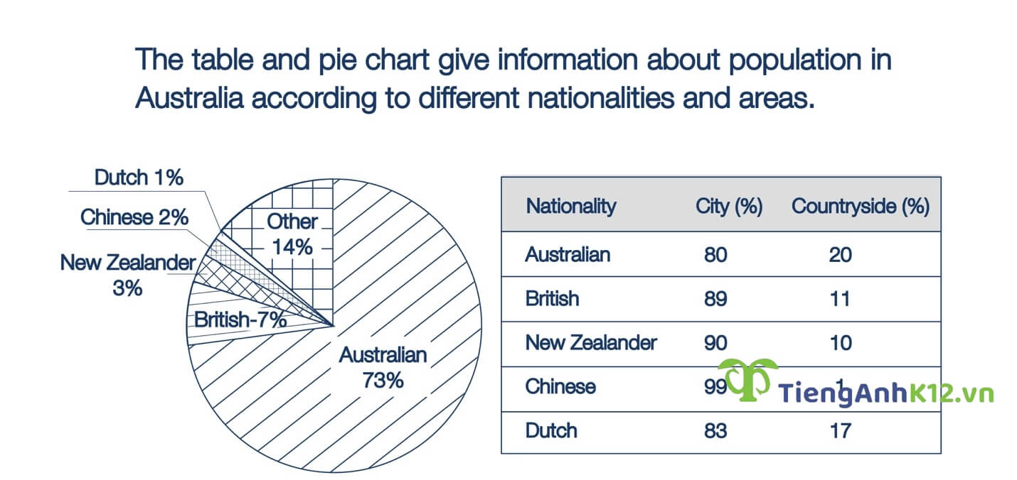 Đề bài: The Pie chart gives information about the country of birth of people living in Australia and the table shows where people born in these countries live
