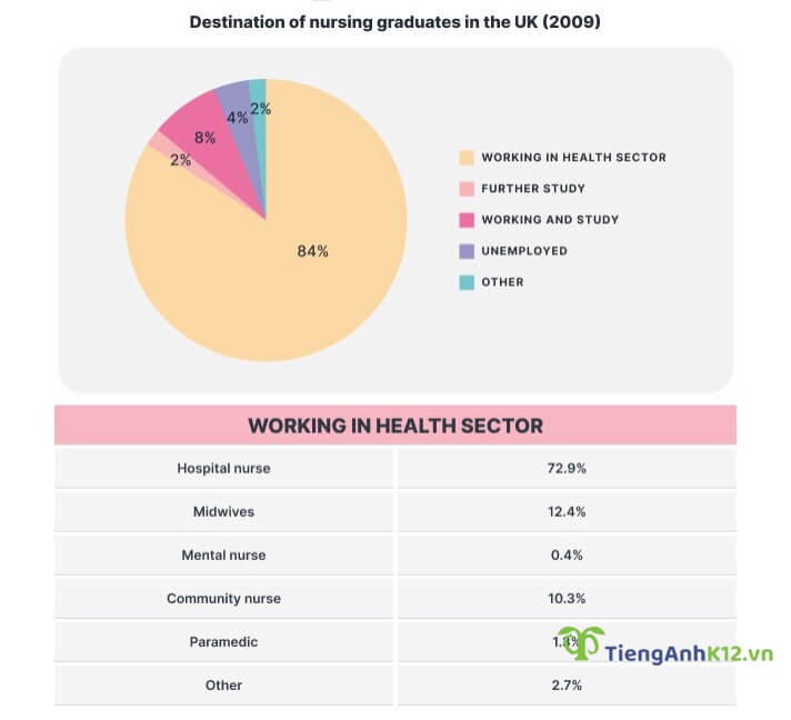 Đề bài: The chart and table below give information about what nursing graduates did after finishing their course in the UK in 2009.