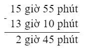 Vậy: 15 giờ 55 phút – 13 giờ 10 phút = 2 giờ 45 phút