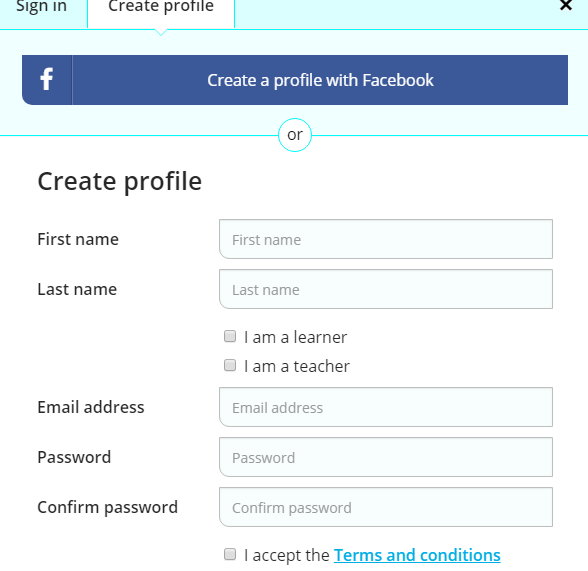 > chọn là người học (Learner) hay Giáo viên (Teacher)