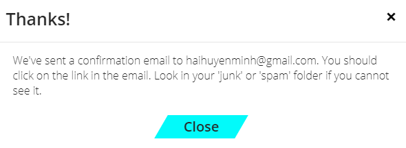 - Sau khi điền toàn bộ thông tin cần thiết, nhấp Continue. Xuất hiện thông báo xác nhận được gửi vào e-mail bạn đăng ký.