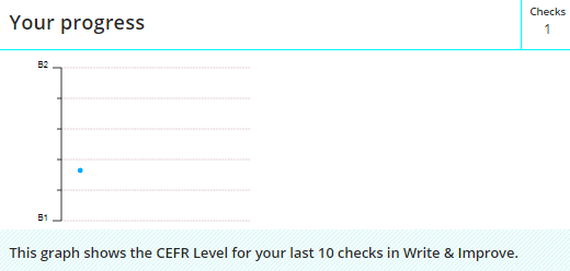 - Bạn có thể xem tiến bộ của mình sau mỗi bài viết ở ô “Your Progess”. Theo đó, trình độ của bạn trong vòng 10 lần Check mới nhất dựa trên khung tham chiếu trình độ ngôn ngữ chung châu Âu CEFR sẽ được hiển thị trong sơ đồ.