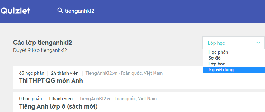 Để tìm kiếm học phần, chọn biểu tượng kính phóng đại ở phía trên mỗi trang của Quizlet. Tiếp đó, nhập chủ đề hoặc tên bài thi bạn đang nghiên cứu và nhấn nút Enter để xem danh sách kết quả.