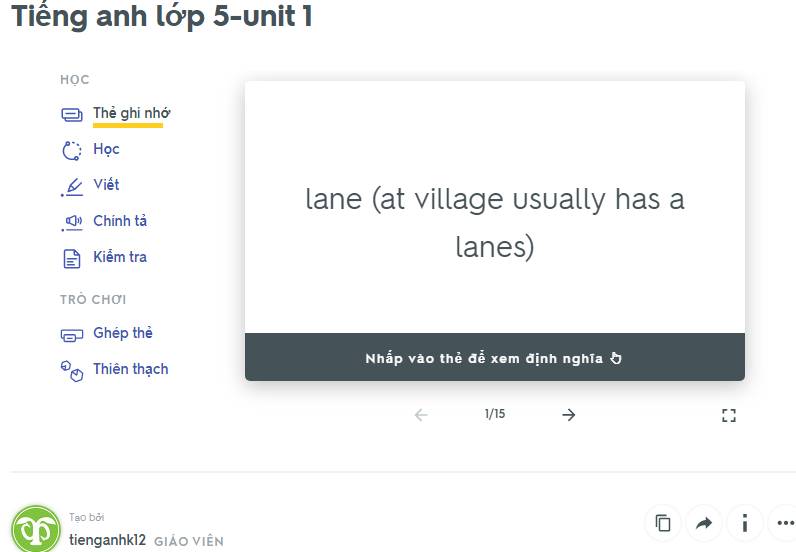 Quizlet là công cụ miễn phí để học các từ vựng và khái niệm, thuật ngữ qua các thẻ từ (flashcard) và những trò chơi thú vị, giúp người học dễ nhớ, nhớ lâu hơn.