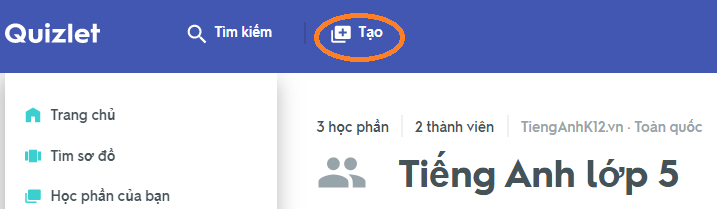 Để bắt đầu, chọn nút Tạo ở đầu bất cứ trang nào của Quizlet.